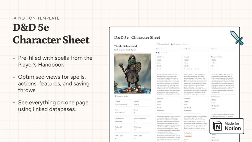 D&D 5e Character Sheet · Notion template